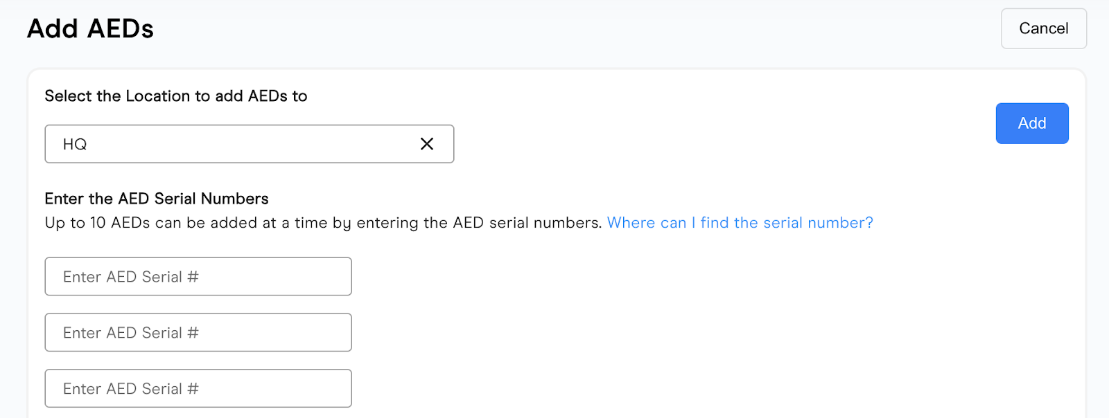 Step 4: Type in the Serial Number for the device you wish to add. Up to 10 at a time. Then press "Add" to finalize your additions.